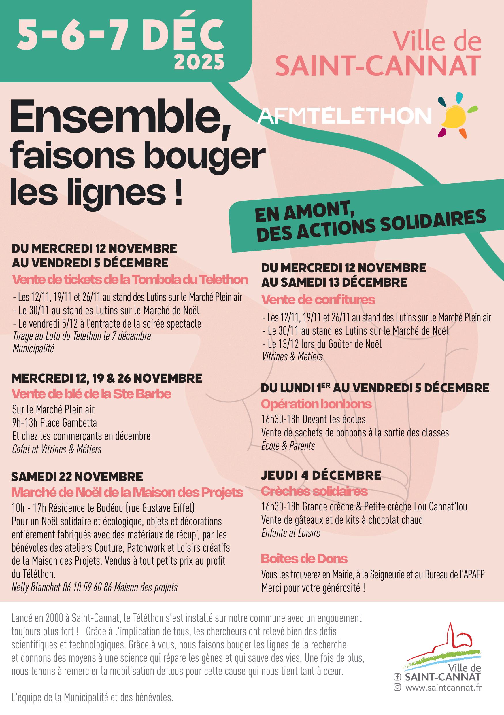 Au programme à Saint-Cannat : Spectacles, repas, lotos, et bien d’autres événements en préparation, au profit de AFM-Téléthon !