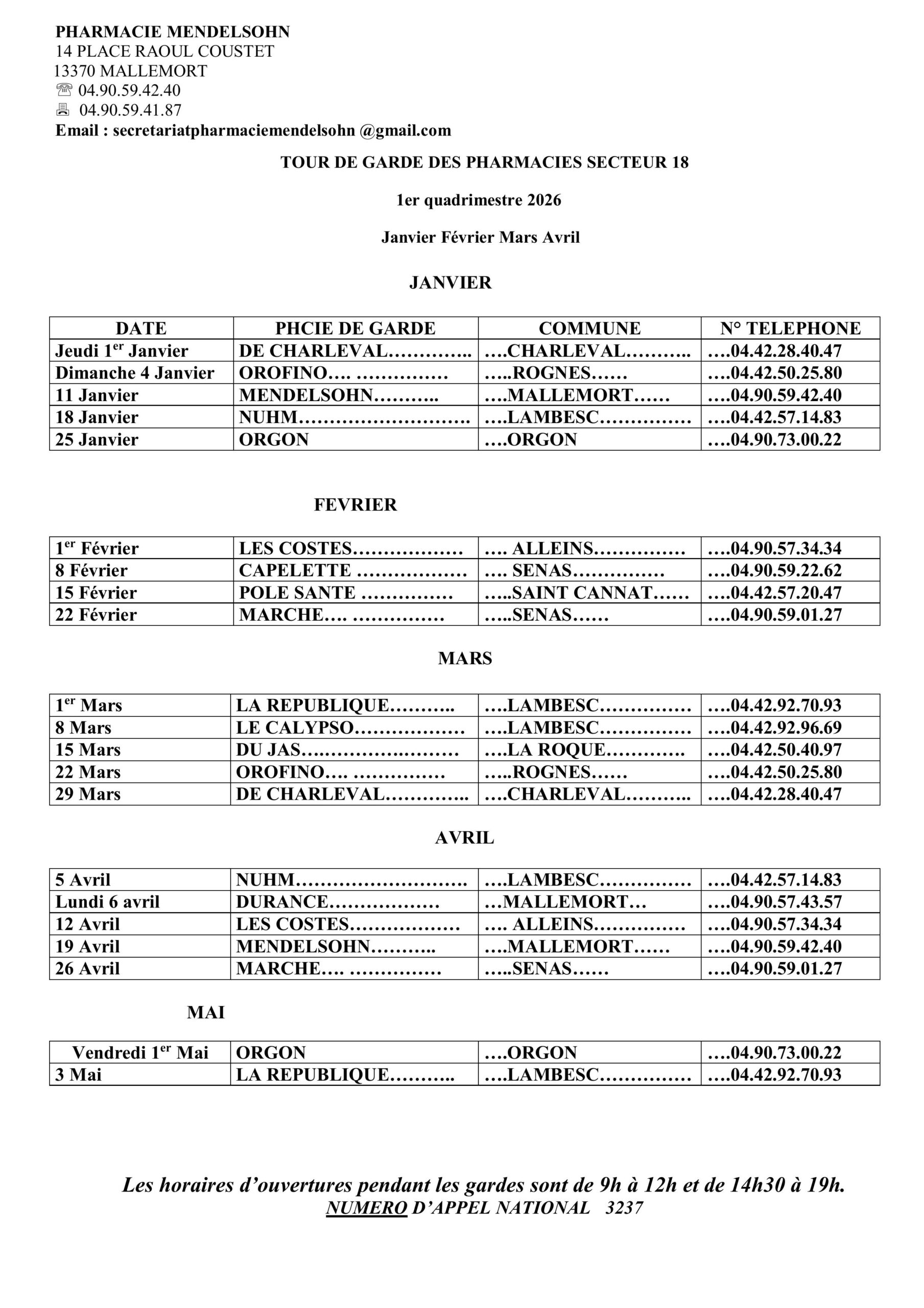 04 90 55 76 09 (permanence téléphonique le jeudi de 14h30 à 17h)
